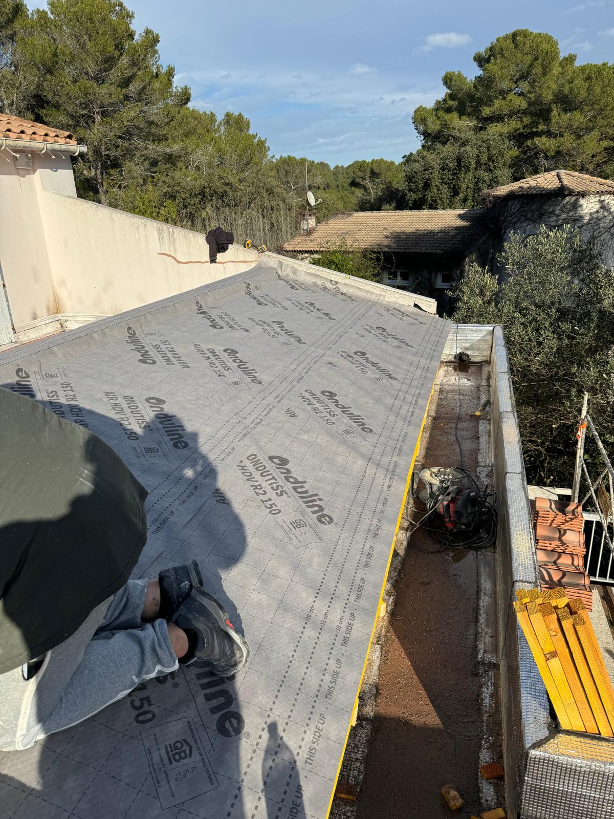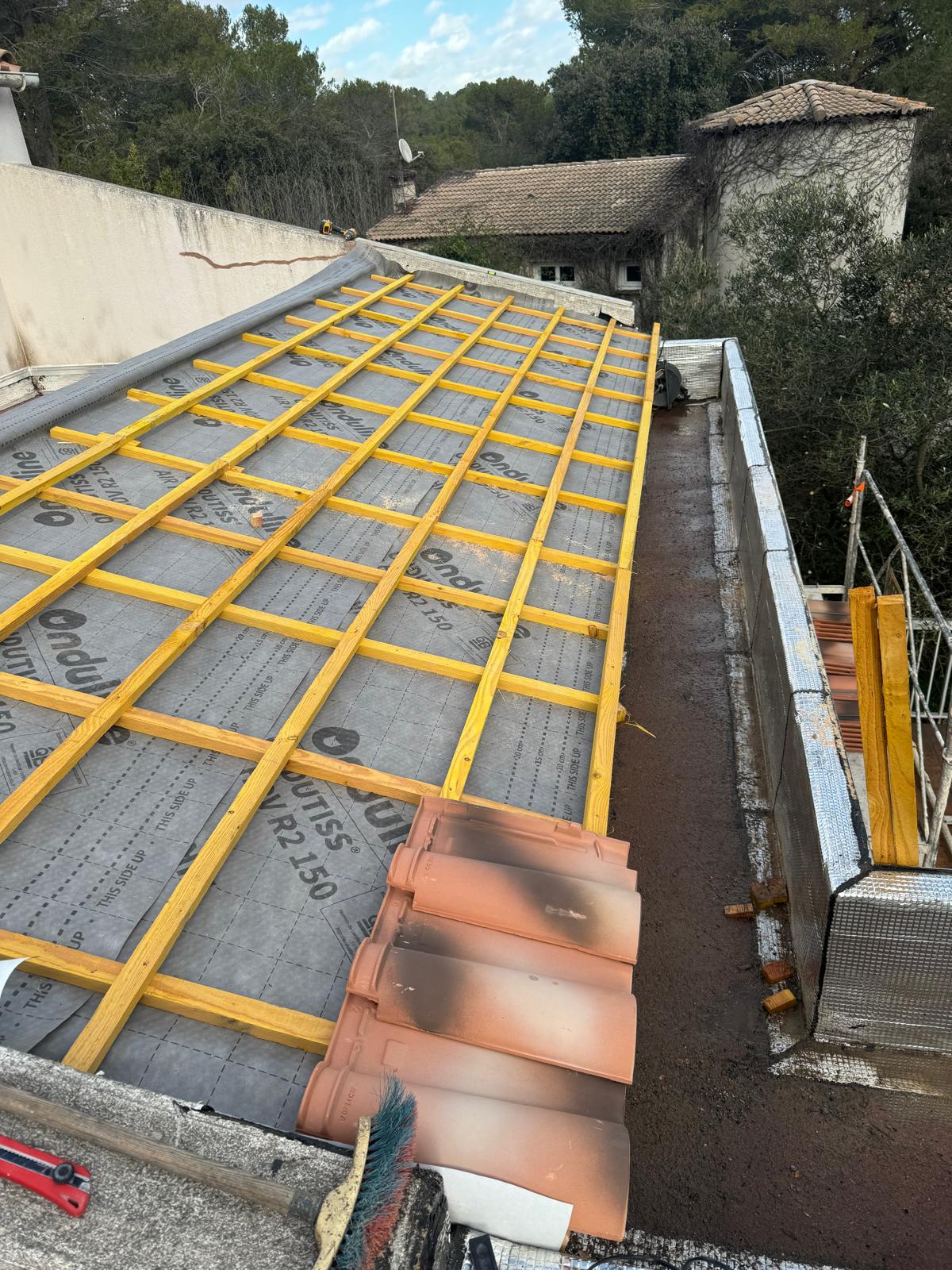 Nous prenons en charge tous les travaux de toiture : remplacement ou réparation de tuiles, rénovation complète, étanchéité, recherche et réparation de fuites, pose de Velux, travaux de charpente et zinguerie, entretien, nettoyage, rénovation des planches de rives et bâchage d’urgence.